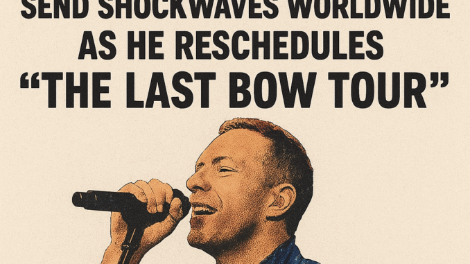 For a band whose music has long been synonymous with luminous optimism, radiant colors, and stadiums full of glowing wristbands, Coldplay managed to cast the world into momentary uncertainty this week. In a move that no one anticipatedโyet everyone is now scrambling to understandโfrontman Chris Martin announced the rescheduling of the highly anticipated โLast Bow Tour,โ a global farewell journey rumored to be Coldplayโs final major touring era.