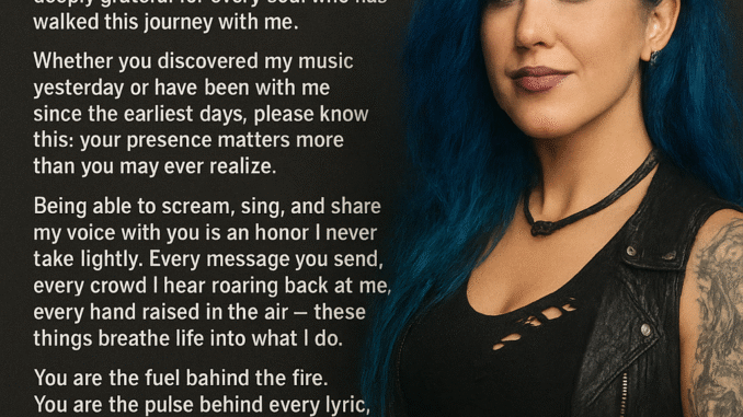I want to take a moment to speak to you from the heart โ not as a performer onstage, not as the vocalist of Arch Enemy, but simply as a human being deeply grateful for every soul who has walked this journey with me. Whether you discovered my music yesterday or have been with me since the earliest days, please know this: your presence matters more than you may ever realize.