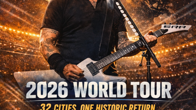 Heavy metal legends Metallica have officially ignited global excitement with the announcement of their Monumental 2026 World Tour, a massive international run set to span 32 cities and mark one of the most historic returns in modern rock history. After decades of dominance, reinvention, and relentless touring legacy, Metallica are once again proving why they remain the undisputed standard-bearers of heavy metal on the world stage.