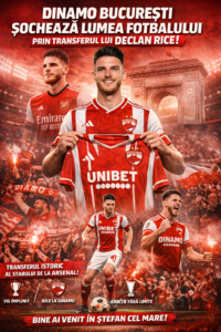 Lumea fotbalului s-a trezit în stare de șoc atunci când Dinamo București a anunțat oficial transferul starului lui Arsenal și al naționalei Angliei, Declan Rice. Într-o mutare care a devenit instantaneu cel mai mare transfer din istoria fotbalului românesc, gigantul din București a confirmat că a obținut semnătura mijlocașului într-o tranzacție care a uimit fanii, analiștii și cluburile din întreaga Europă. Ceea ce odată părea o fantezie discutată în dezbateri nocturne a devenit brusc realitate.
