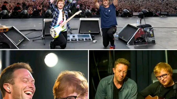 Chris Martin & Ed Sheeran just left fans breathless with their emotional duet of “Fix You”, a performance that quickly spread across social media and was hailed as one of the most heartfelt live moments in recent memory. The stripped-back arrangement, the quiet intensity, and the visible emotion between the two artists made it feel less like a stadium performance and more like an intimate confession shared with millions. Yet what many fans don’t know is that this unforgettable duet didn’t begin on stage. It was born from a deeply touching moment behind the scenes.